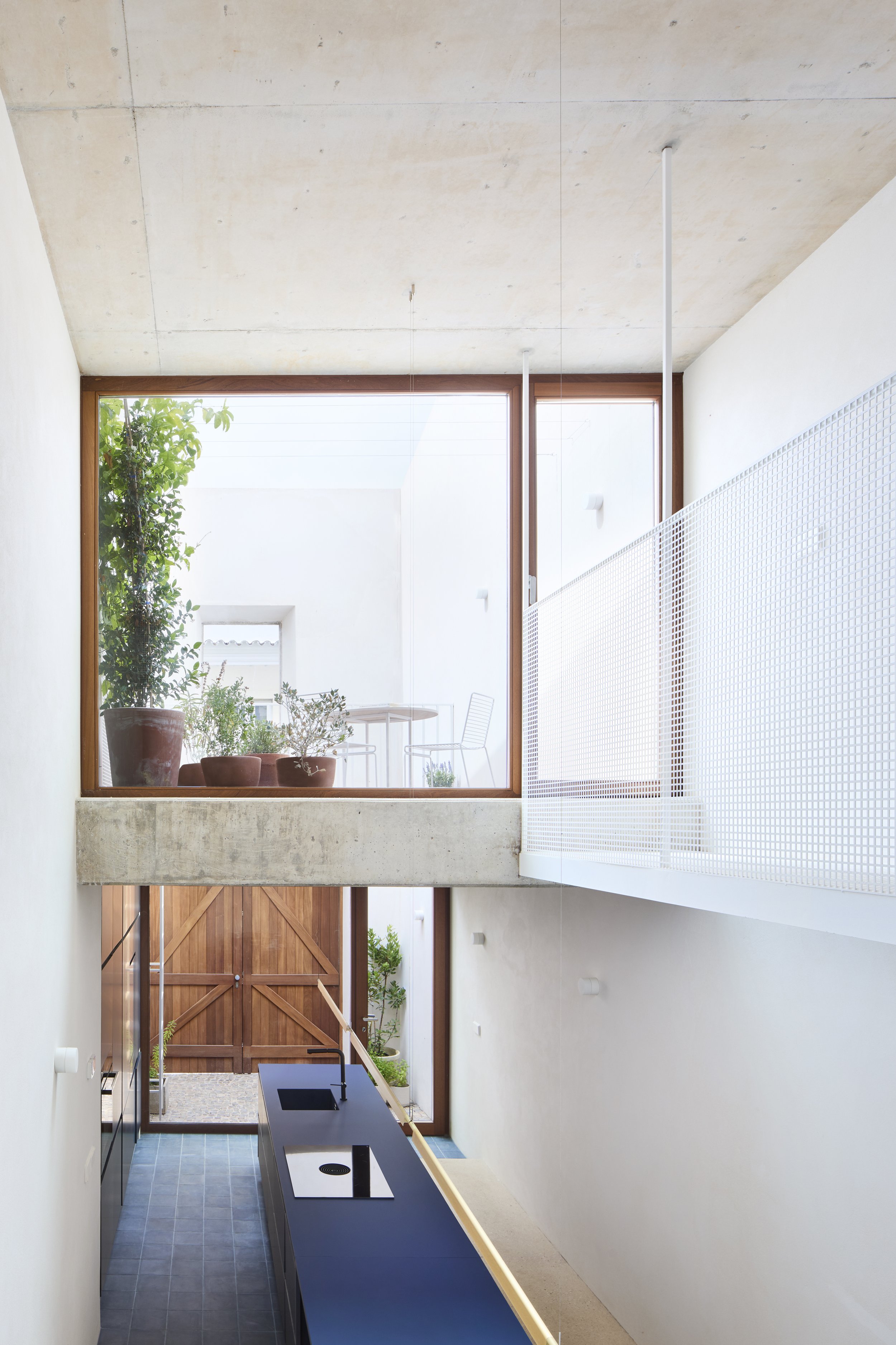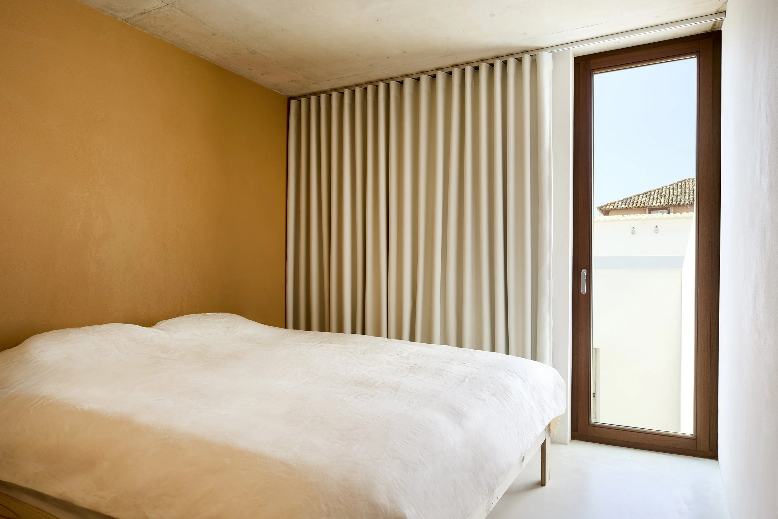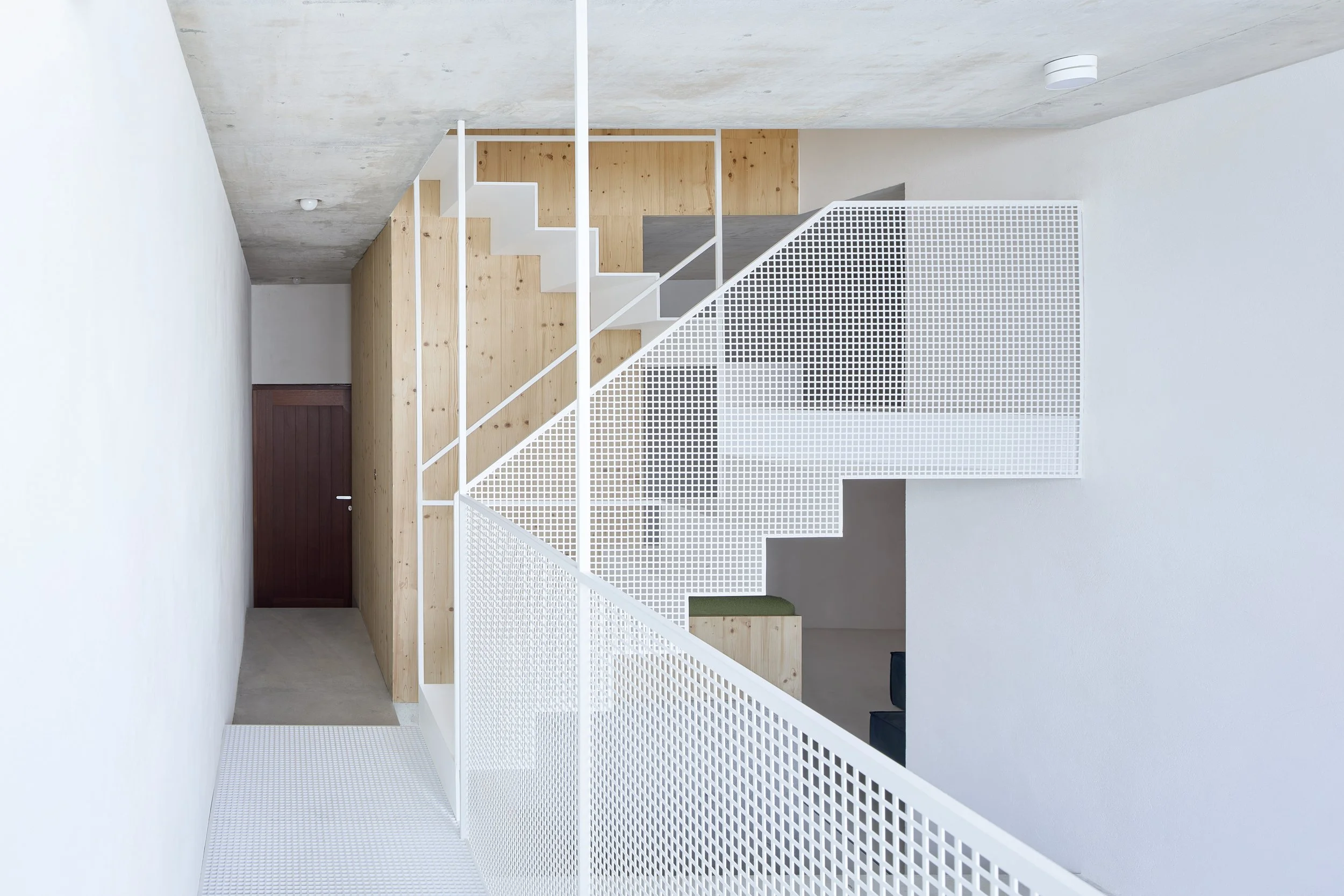 Casa 45, in Loulé, emerges from the composition of pure volumes that explore simple geometry and a direct dialogue with the topography. Orientation drives the generous glazed openings, framing the landscape and flooding the interior with natural light, while cantilevered balconies and shading planes ensure comfort and solar protection. The functional layout clearly separates social and private areas, fostering both openness and intimacy. A minimal and light material palette reinforces the sobriety of the design, allowing the house to root itself elegantly and efficiently in its setting.